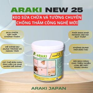 Araki New 25: Keo sửa chữa vá tường kết hợp chống thấm trong và ngoài trời, che kín các vết nứt, bong tróc, lỗ thủng,..