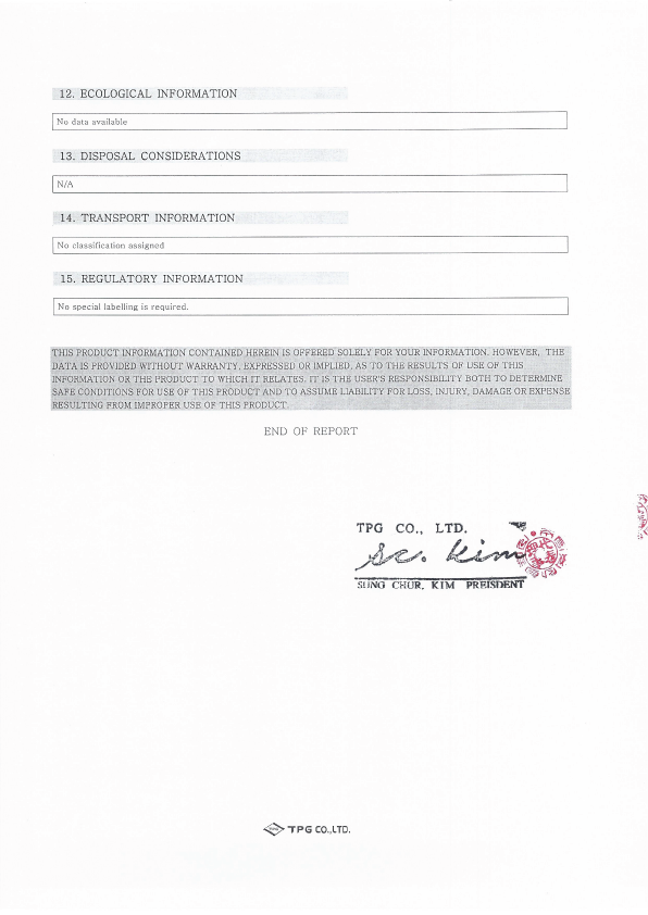 TPG được thành lập vào năm 1984 có Trụ sở chính ở Hàn Quốc, công ty đã mở rộng các mạng lưới chi nhánh tại Mỹ (2003), Đông Á và Việt Nam thông qua các sản phẩm như: Túi hút khí oxy, túi hút ẩm và các sản phẩm khác. Với hơn 40 năm kinh nghiệm, TPG hiện là công ty có thị phần lớn số 1 tại Hàn Quốc trong ngành này.