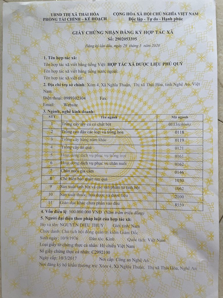 TÊN CÔNG TY: Hợp Tác Xã Dược Liệu Phủ Quỳ