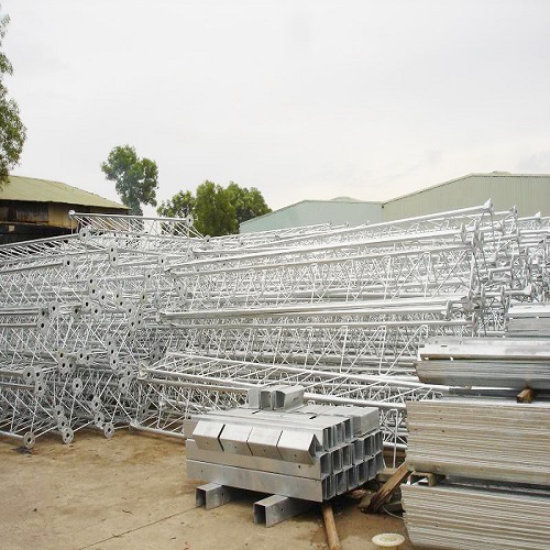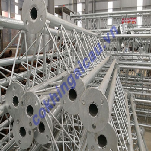 Có thể là dạng cột tam giác hoặc cột tứ giác tùy theo yêu cầu của chủ đầu tư. Các đốt cột 3m, 6m liên kết với nhau bằng bulong cấp bền mạ nhúng kẽm nóng và giữ thăng bằng nhờ hệ thống dây co.