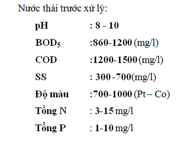 Sau đây là công nghệ xử lý nước thải dệt nhuộm với độ màu trung bình với thông số như sau: