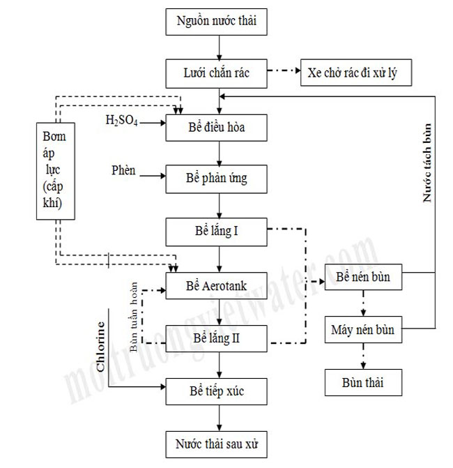 Quá trình chuyển hóa đó được thực hiện đan xen và nối tiếp nhau cho đến khi không còn thức ăn cho hệ vi sinh vật nữa. Nước thải sau khi xử lý sinh học hiếu khí được đưa qua bể lắng II.