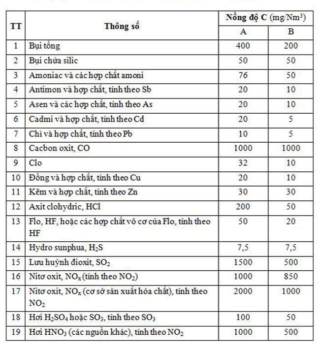 Quy chuẩn quy định về nồng độ khí thải công nghiệp