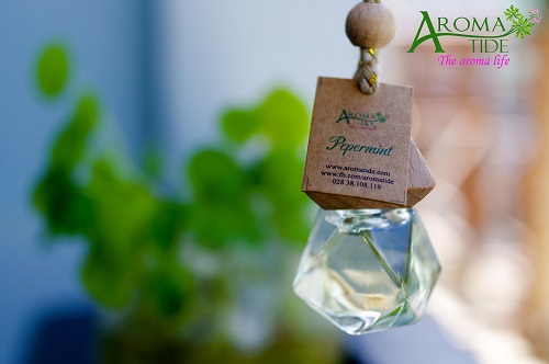 - Treo xe trong ô tô: Với cấu tạo lọ thủy tinh nhỏ gọn chứa tinh dầu nguyên chất, mỗi một lọ sẽ bao gồm một hộp, lọ đựng tinh dầu, nắp nhựa và một kim găm. Bạn sử dụng kim găm đục 3-4 lỗ trên nắp nhựa. Vặn chặt nắp gỗ lại và dốc ngược lọ tinh dầu để tinh dầu thấm ra nắp gỗ. Treo vào gương xe hoặc bất cứ khu vực nào có chuyển động. Tinh dầu sẽ thấm vào nút gỗ và khuếch tán ra không khí. Giúp bạn khử mùi hôi của xe, chống say xe, buồn nôn, giảm cảm giác khó chịu khi đi xe.