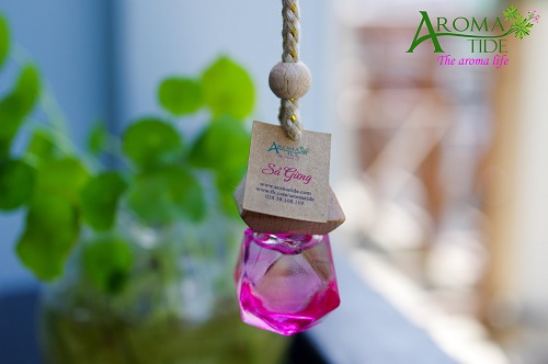 - Treo xe trong ô tô: Với cấu tạo lọ thủy tinh nhỏ gọn chứa tinh dầu nguyên chất, mỗi một lọ sẽ bao gồm một hộp, lọ đựng tinh dầu, nắp nhựa và một kim găm. Bạn sử dụng kim găm đục 3-4 lỗ trên nắp nhựa. Vặn chặt nắp gỗ lại và dốc ngược lọ tinh dầu để tinh dầu thấm ra nắp gỗ. Treo vào gương xe hoặc bất cứ khu vực nào có chuyển động. Tinh dầu sẽ thấm vào nút gỗ và khuếch tán ra không khí. Giúp bạn khử mùi hôi của xe, chống say xe, buồn nôn, giảm cảm giác khó chịu khi đi xe.