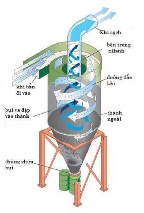 Quá trình sản xuất của các nhà máy công nghiệp phát sinh khí thải công nghiệp, như khí thải lò hơi, khí thải lò nung, khí thải phát sinh trong quá trình sơn, các nhà máy sản xuất mùn cưa, dăm bào, nhà máy chế biến gỗ vv…Các loại khí thải này đều mang thành phần ô nhiễm, gây hại môi trường nên trước khi thải bỏ chúng cần phải qua quá trình xử lý bụi sạch các chất ô nhiễm để tránh gây tác hại đến môi trường sống.