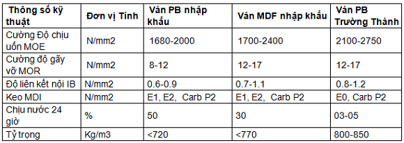 Chất lượng ván PB của TTF đạt chỉ tiêu cơ lý hóa đều cao hơn MDF.