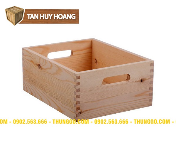 - Thùng gỗ chứa Tân Huy Hoàng thường dùng loại thùng gỗ đóng thưa bằng các thanh gỗ, bốn góc có đóng ke và sau khi đóng gói hàng hóa, thùng carton vào trong thùng gỗ thì sẽ tiến hành đóng nắp lại và siết đai lại.