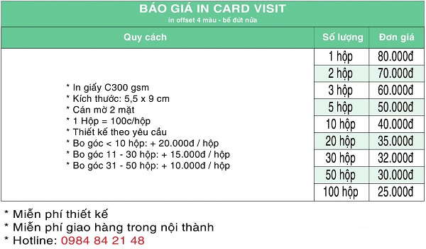 - In Card Visit đẹp hiện nay là nhu cầu không thể thiếu của các cá nhân, tập thể, các doanh nghiệp. Card Visit là một công cụ khi bạn bắt đầu tiếp xúc với khách hàng. Một chiếc card visit chứa đựng toàn bộ thông điệp của bạn muốn giới thiệu đến khách hàng. Ngoài ra chiếc card visit thể hiện nhiều hơn những thông tin về bạn hay về công ty. Nó thể hiện phong thái chuyên nghiệp để khách hàng có thể đặt niềm tin.