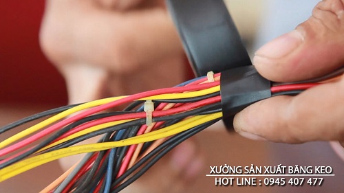 - Độ co dãn tốt, băng keo dẻo, dai, khó bị đứt, độ dính cao, dính chặt dây điện trong thời gian dài.