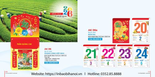 ✾ In Bao Bì Hà Nội cung cấp những mẫu Lịch bloc 2026: Lịch bloc đại 2026, bloc siêu đại 2026, bloc siêu cực đại 2026, bloc trung màu 2026, lịch bloc siêu đại đặc biệt, bloc siêu cực đại đặc biệt, bloc đại đặc biệt 2026,.. được đánh giá cao trong mùa lịch tết năm 2026 bởi tính sáng tạo trong thiết kế, công nghệ in metalize, Hộp đựng lịch in metalize bế nổi, túi đựng lịch khá đẹp mắt. Ruột tờ lịch in offset 4 màu trên giấy couche matt 64gsm.