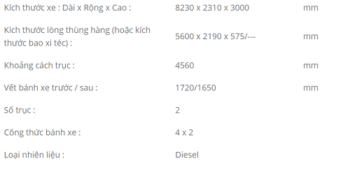 + Số lượng lốp trên trục I/II/III/IV: 02/04/-/-/-