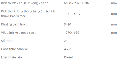 + Số lượng lốp trên trục I/II/III/IV: 02/04/-/-/-