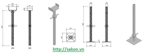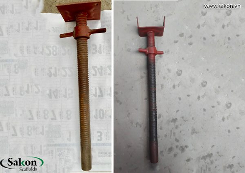- Kích thước kích tăng giàn giáo có thể là 0,3, hay 0,5m tuy nhiên chiều dài phổ biến là 0.5m để đảm bảo sự chắc chắn cho hệ giàn giáo.