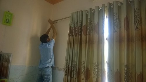 - Lắp đặt rèm về vị trí ban đầu - cân chỉnh.
