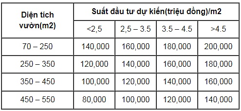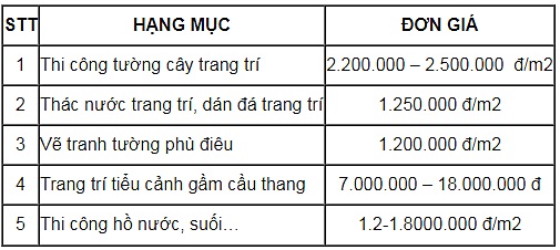 Lưu ý: Trên đây là những mức giá tham khảo của dịch vụ thiết kế, thi công cảnh quan sân vườn mới nhất 2020. Tuy nhiên mức giá này có thể thay đổi theo thị trường cũng như yêu cầu của quý khách.