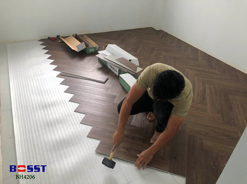 - Bước 3: Lắp đặt sàn nhựa xương cá
