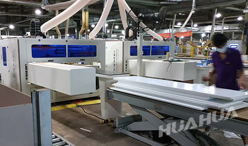 ✤ Tự động xuống liệu: Đẩy các tấm đã gia công xuống bàn ra liệu, đồng thời làm sạch bụi bẩn còn sót lại