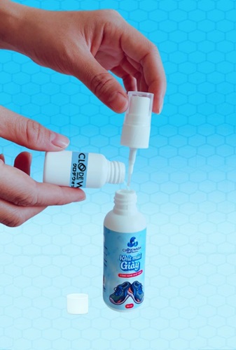 • Sản phẩm Chai xịt khử mùi giày Công nghệ Nhật Bản CLODEWASH của chúng tôi hoạt động dựa vào cơ chế sản sinh ra khí Clo dioxide (ClO2).