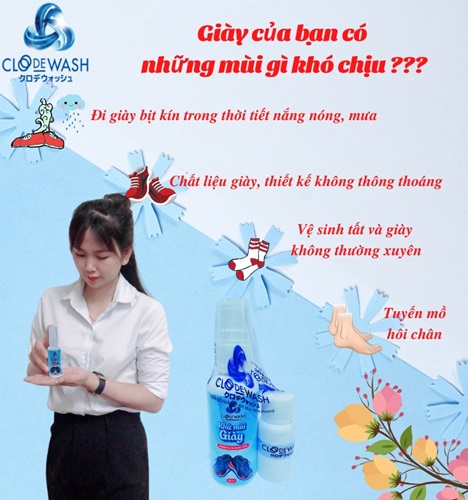 Công Ty Cổ Phần Envroy Việt Nam - Doanh nghiệp chế xuất 100% vốn đầu tư Nhật Bản - Cung cấp độc quyền sản phẩm Chai xịt khử mùi giày CLODEWASH, một giải pháp hữu ích nhằm loại bỏ mùi hôi khó chịu do giày dép.
