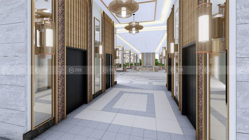 ✤ Hệ thống chiếu sáng: Đèn neon được bố trí ẩn ở góc phòng thang.