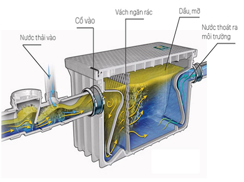 Bể tách mỡ Composite, bẫy mỡ, bể tách dầu mỡ, thùng lọc mỡ: Là thiết bị dùng để tách dầu mỡ thừa sau quá trình sơ chế, vệ sinh ra khỏi nước thải. Được bố trí dưới chậu rửa trong bếp ăn của gia đình, căn tin, nhà hàng, khách sạn ...