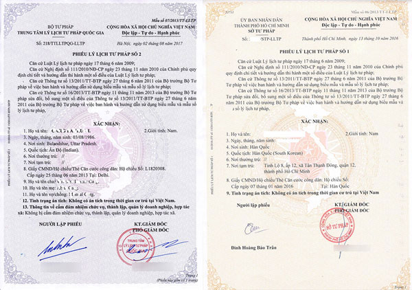 ☛ Bạn đang cần làm phiếu lý lịch tư pháp số 1 và số 2 (giấy xác nhận không phạm tội)?