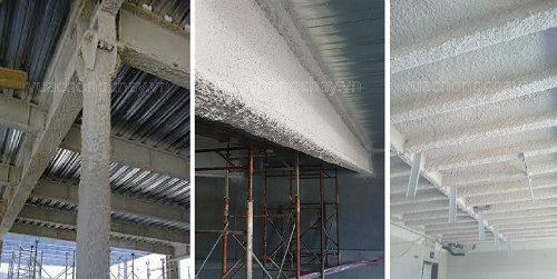 – Phun trực tiếp lên bề mặt kết cấu thép, áp dụng chủ yếu cho giầm/ sàn
