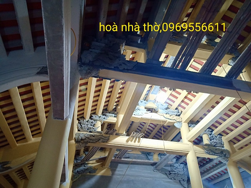 ➢ Phần mái nhà gỗ năm gian 32 cột thông gian là được lợp bằng ngói liệt, với hai lớp dày chồng lên nhau nên khi vào mùa hè rất mát, mùa đông thì ấm áp. Các phòng ngăn nhau bởi vách đổ măng nên tạo được không gian riêng tư rất cao. Gian giữa kiểu kết cầu kẻ chuyền tạo nên bộ khung rất chắc chắn.