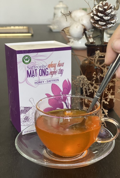 - Lấy 10 ml saffronbe pha với 100 ml nước khuấy đều và thưởng thức. Bạn sẽ thấy ngay được vị ngọt của mật ong và hương thơm dịu nhẹ của nhụy hoa nghệ tây.