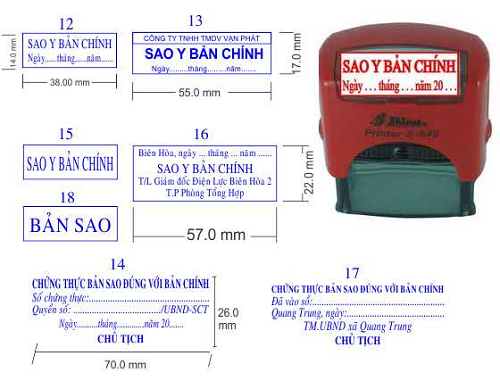✔ Dấu mộc có tên đơn vị, chữ sao y bản chính và ngày tháng năm sao y - kích thước: 55mm x 17mm
