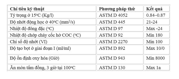 ✓ Tiêu chuẩn kỹ thuật: Dầu đáp ứng được tiêu chuẩn: ISO VG 32, 150.