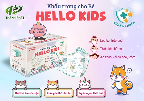 - Khẩu trang EM BÉ HELLO KIDS được tích hợp với 03 chức năng vào 01 chiếc khẩu trang hello kids như: