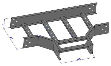 + Thang cáp điện - T: Là co nối thang cáp để chia thang cáp thành 2 nhánh khác xuất phát từ thang cáp ban đầu.