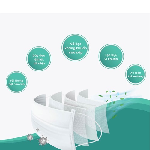- Kháng khuẩn: Khả năng lọc vi khuẩn (BFE 95%), lọc các khí độc và lọc bụi, ngăn ngừa vi khuẩn và các bệnh nguy hiểm lây qua đường hô hấp cao hơn khẩu trang thông thường.