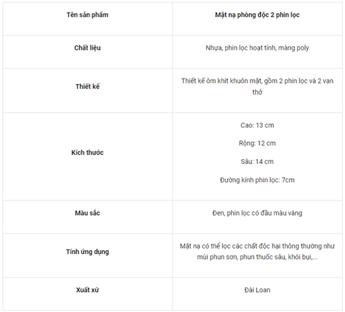 - Sản phẩm sử dụng chất liệu nhựa mềm, có 2 phin lọc và 2 van thở đảm bảo an toàn cho người dùng khi gặp vấn đề không khí bị ô nhiễm.