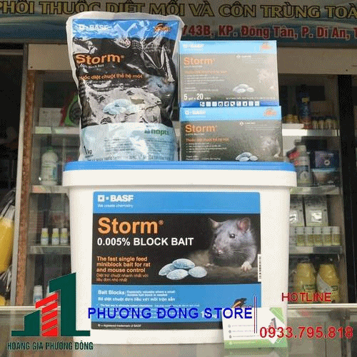 Được nghiên cứu và sản xuất bởi BASF (một công ty hoá chất hàng đầu thế giới đến từ Đức) thuốc diệt chuột Storm giúp tiêu diệt và kiểm soát chuột hiệu quả. Storm có nhiều ưu điểm nổi bật hơn so với các dòng sản phẩm khác như: cơ chế hoạt động của thuốc không làm chuột chết ngay mà sẽ chết sau 3-4 ngày làm chuột không cảnh giác khi ăn bả, chuột thường chết ngoài ánh sáng hoặc gần nguồn nước giúp dễ dàng thu gom xử lý xác chuột, an toàn cho sức khoẻ con người…