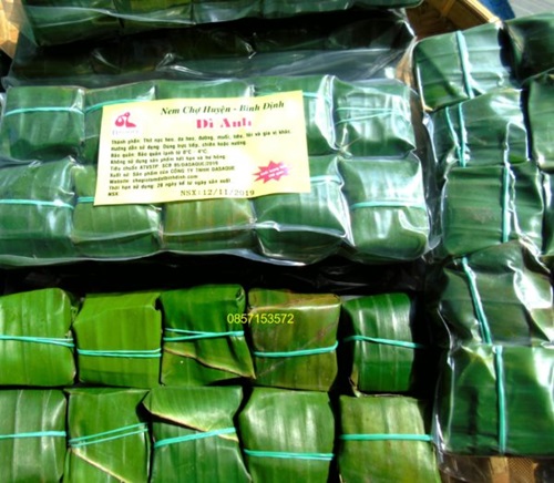 Nem chua gói Chợ Huyện Dì Anh là đặc sản nổi tiếng cả nước được chế biến thủ công từ nguồn sản vật địa phương. Đây là món ăn không thể thiếu trong các ngày lễ tết, tiệc tùng tại Bình Định.