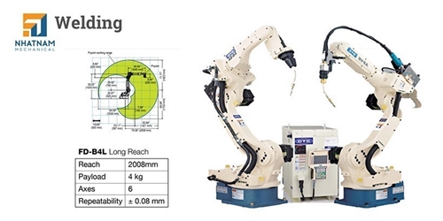 - Số trục: 6 - Độ chính xác lặp lại: +- 0,08mm - Phạm vi tiếp cận ngang: 1388mm |