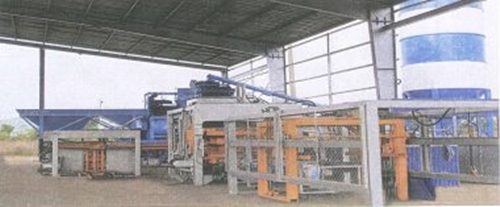 - Kế tiếp hỗn hợp được phối trộn với xi măng, cát và nước sạch theo tỷ lệ thích hợp bằng máy trộn rồi được ép tạo hình bằng máy ép thuỷ lực.