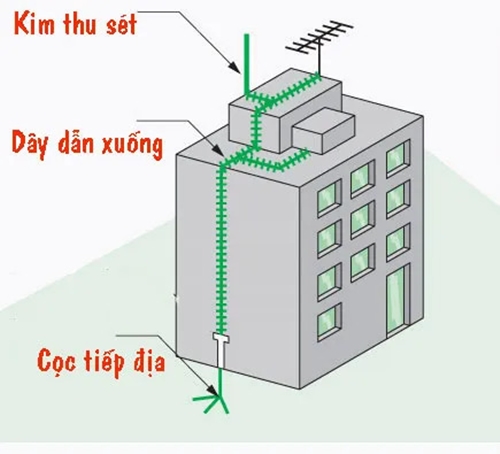 Bộ chống sét trực tiếp được cấu thành từ 3 bộ phận chính là: