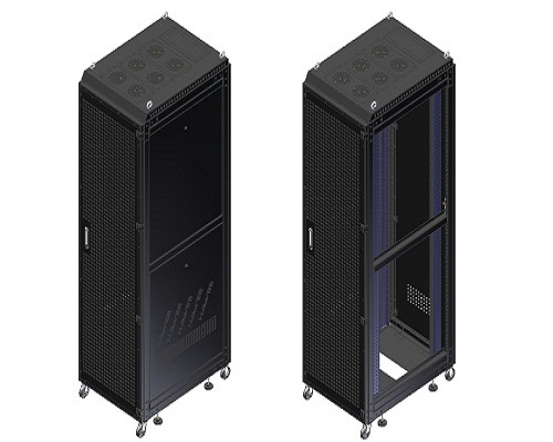 Cửa hông được thiết kế 2 phần trên dưới (ngoại trừ tủ < 27U), trọng lượng nhẹ, có khóa bảo vệ