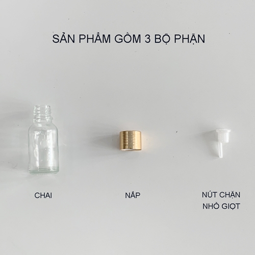 Chai chiết tinh dầu bao gồm 3 bộ phận chính là chai, đầu chặn nhỏ giọt và nắp. Chất liệu thủy tinh chắc chắn giúp bảo vệ tinh dầu không tiếp xúc với ánh sáng mặt trời và không khí bên ngoài. Nhờ vào đặc điểm này mà chai chiết có thể giữ cho chất lượng và hiệu quả của tinh dầu được bảo toàn. Đầu chặn nhỏ giọt cho phép người dùng dễ dàng điều chỉnh lượng tinh dầu cần sử dụng, giúp tránh lãng phí và tiết kiệm nguyên liệu.