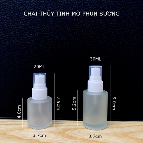 Chai xịt phun sương thủy tinh mờ được sản xuất từ chất liệu thủy tinh cao cấp si mờ sang trọng, đẹp mắt để đáp ứng nhu cầu đóng gói và bảo quản các loại hóa mỹ phẩm, tinh dầu, tinh chất,... Chai được chia làm 2 loại dung tích khác nhau là 20ml và 30ml để phù hợp với từng mục đích sử dụng khác nhau.