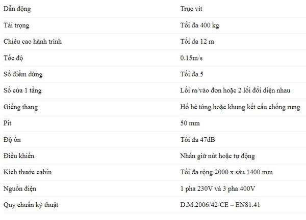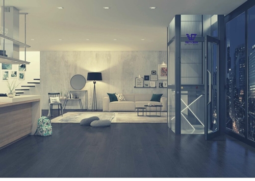 Đây là dòng thang máy gia đình truyền động trục vít, không cần hố pít.