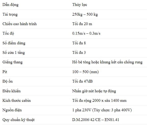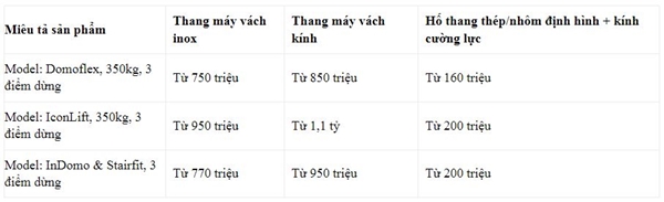 3. Bảng giá thang máy gia đình Area Lift - Lifting Italia