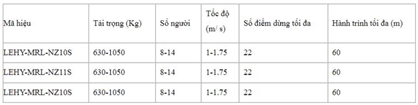 Số lượng: 01 thang kính, tải trọng 1050kg, 14 người, tốc độ 1.0m/s, 02 điểm dừng
