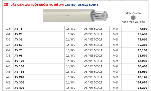 CÁP AV LION - CÁP PHÂN PHỐI CHẤT LƯỢNG CHO MỌI CÔNG TRÌNH