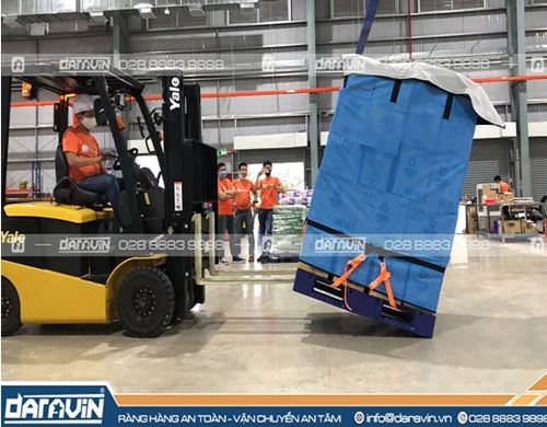 Sản phẩm lưới quấn pallet tái sử dụng có ràng chân đảm bảo hàng hóa an toàn hơn trong quá trình di chuyển giúp tránh gây thiệt hại chi phí hàng rơi đổ, vỡ cho doanh nghiệp.