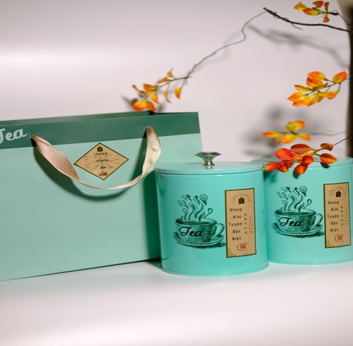 Một set quà tặng trà Olong Kim Tuyên sẽ bao gồm hai hộp trà Olong Kim Tuyên 500g với màu xanh ngọc nhã nhặn nhưng không kém phần thanh lịch, tạo cảm giác tinh tế khi đem tặng. Ngoài ra set có túi đi kèm bên ngoài giúp quý khách dễ dàng mang xách, gọn nhẹ.